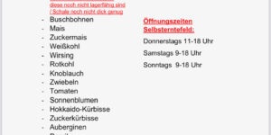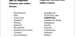 Aktuelle Übersicht Selbsterntefeld 16.09.2023